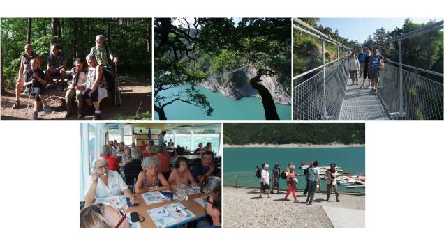 Vingt cinq participants ont rejoint le lac de Monteynard à Treffort en début de matinée. Profitant des bonnes conditions météo, sept d’entre eux ont entrepris la randonnée des passerelles. Une ballade sans difficulté, qui les ont conduit sur la rive du lac, à Savel pour retrouver les autres Anciens Poma sur le bateau La Mira.