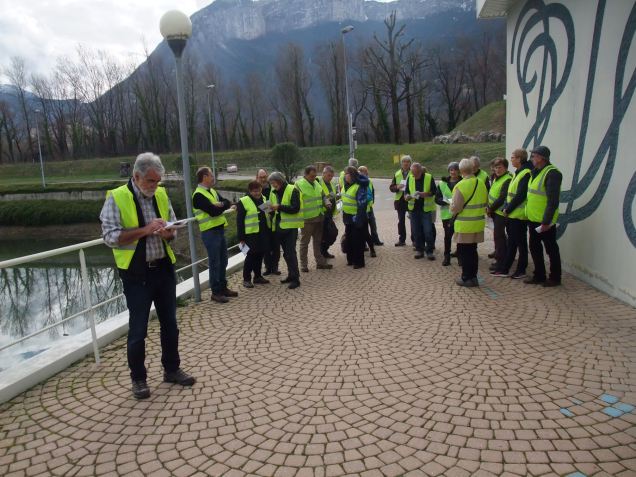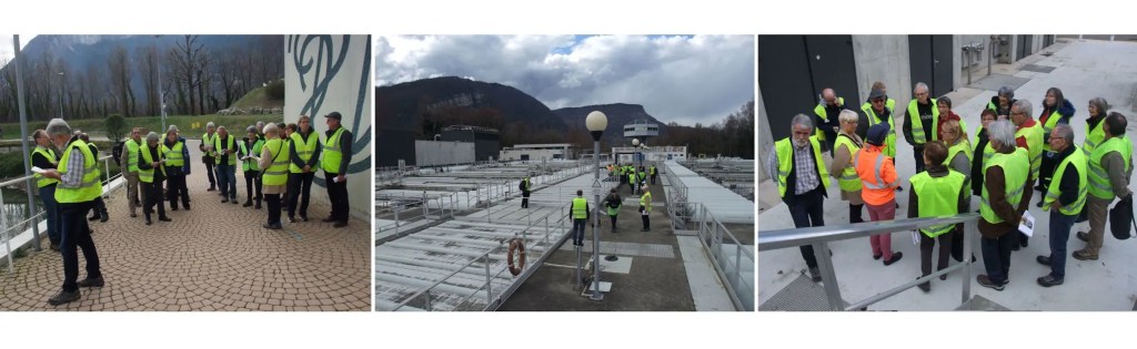 Après avoir déjeuner au restaurant La Queue de Cochon au Fontanil, 26 Anciens Poma avaient rendez-vous sur le site d’Aquapole, situé à proximité du restaurant, entre l’autoroute et l’Isère. Ce fut l’occasion de découvrir comment nos eaux usées étaient traitées.