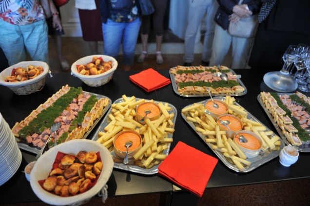 Une petite heure de route et nous arrivions au Creusot où un déjeuner nous attendait dans une annexe du Château de la Verrerie. Dans une magnifique salle où les tables étaient dressées de nappes immaculées et les chaises recouvertes de tissus rouges, le seul alignement des couverts et des verres donnait un air noble au repas. Il n’y avait ensuite que quelques dizaines de mètres pour découvrir le château lui-même.