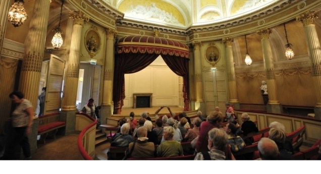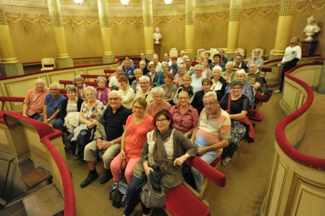 La dernière visite était plus imprévue : l’un des deux fourneaux de l’ancienne cristallerie fut transformé, par les Schneider, en un petit théâtre destiné à accueillir leurs gros clients. Dans cette petite salle aux étonnants trompe-l’œil et aux belles décorations, la ville du Creusot organise encore des spectacles ou des concerts.