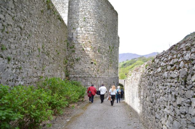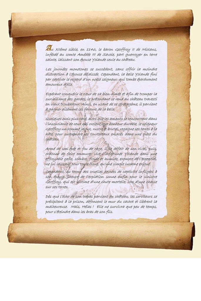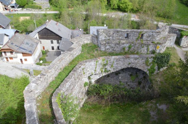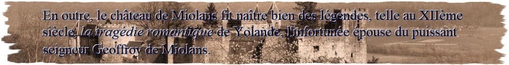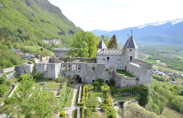 La première visite commence par le château de Miolans, classé Monument historique depuis 1944, qui se trouve sur un escarpement rocheux surplombant la Combe de Savoie. Il est l’un des ensembles fortifiés les plus importants et les mieux conservés de Savoie. Il représente le type le plus complet et le plus parfait de l’art militaire à la fin du XVe siècle. Dans sa forme générale, le château est achevé au début du XVIe siècle et inscrit clairement la puissance de ses seigneurs dans le paysage savoyard. Ainsi, au Moyen âge, il contrôlait l’une des principales routes transalpines : celle qui permettait de rejoindre l’Italie par la vallée de la Maurienne.