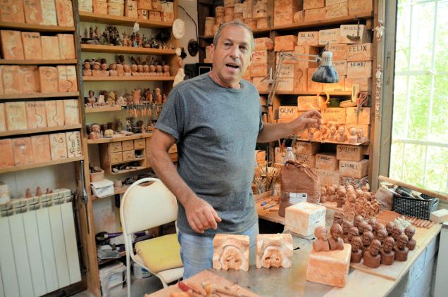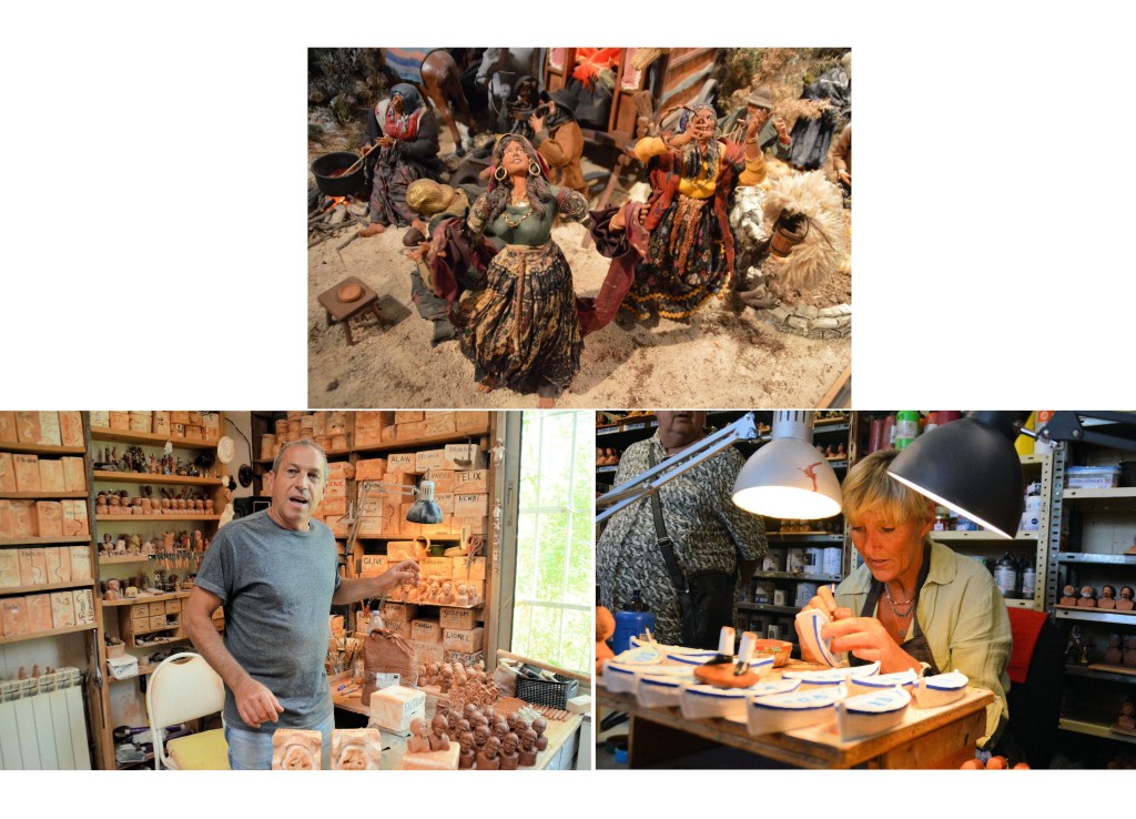 Nous retrouvons notre guide Georges devant l’office du tourisme d’Aubagne, qui nous accompagnera une bonne partie de la journée. La première visite sera consacrée à l’atelier d’art des santons de Provence Maryse Di Landro.