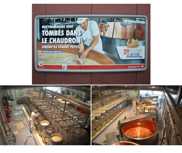 C’est à la maison du Gruyère, une fromagerie de démonstration, située à Pringy, près de Gruyères, que débute notre visite d’initiation à la fabrication du célèbre fromage. Accompagné de la vache Cerise dans notre audio-guide et de la pochette de fromage offerte par la maison, nous allons découvrir ce qui rend le gruyère si particulier. Sur la galerie visiteurs nous avons assisté à une des étapes de la fabrication traditionnelle en direct, suivant un procédé transmis de génération en génération.