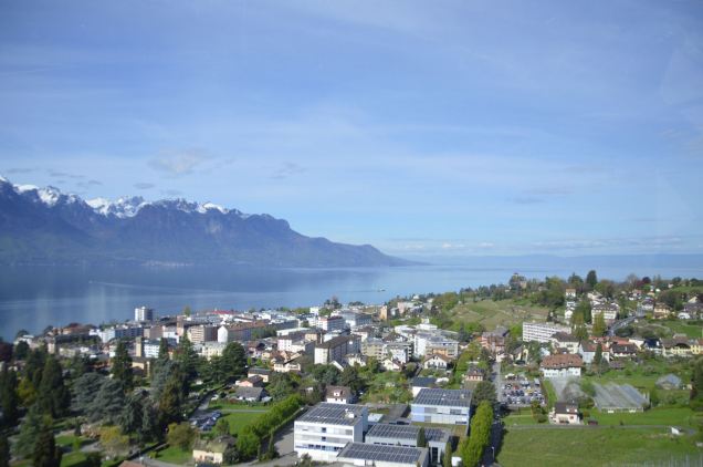 A peine a-t-on laissé la gare derrière nous, que le train prend de l’altitude et rapidement, le panorama s’offre aux passagers. On ne se lasse pas de contempler les sommets enneigés, la vue magnifique sur le lac Léman, les vignes en terrasses, que l’on traverse dans la première partie du trajet. En une trentaine de minutes, le GodenPass Panoramic gravit la pente afin d’atteindre la gare de Montbovon, où nous attend notre car pour rejoindre Gruyères, la deuxième étape de la journée.