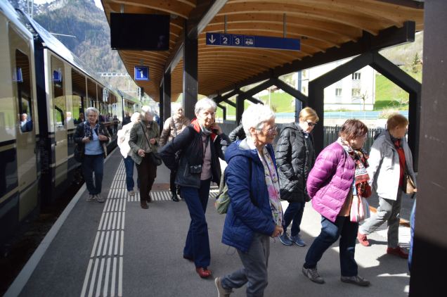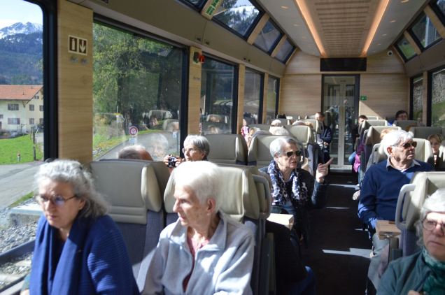 Notre proposition d‘excursion en Suisse a suscité un tel enthousiasme, qu’elle a nécessité la mise à disposition de deux cars. Cependant, en raison de problèmes logistiques invoqués par les chemins de fer suisse, il n’a pas été possible de prévoir les deux cars le même jour. Compte tenu de cette situation, cet article sera consacré à la journée du 27 ainsi qu’à celle du 28 avril.