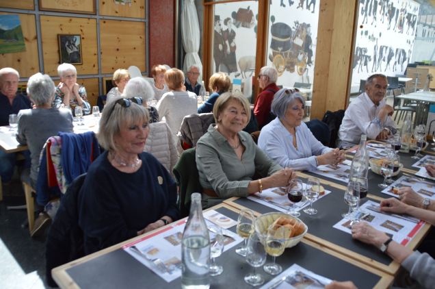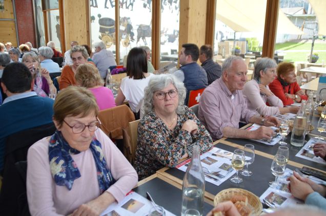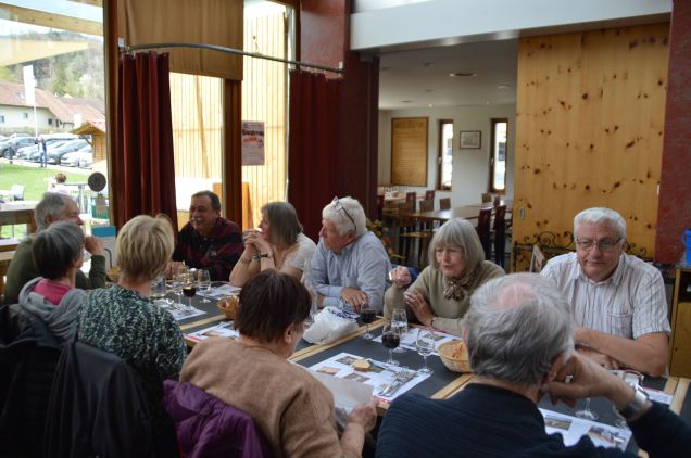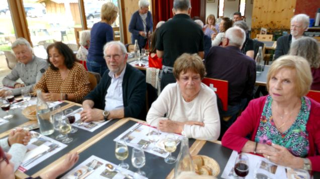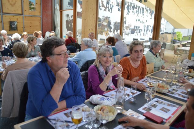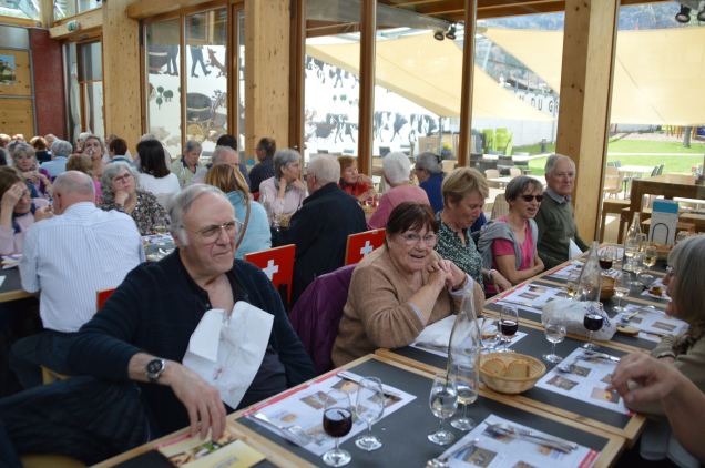 Au restaurant de la maison du Gruyère, nous sommes invités à prendre place. L’endroit est très agréable, avec un personnel, qui semble visiblement formé aux exigences des standards de qualité suisses ! Quant au menu, du genre spécial groupes, il manque quelque peu d’originalité, alors qu’au cœur du berceau des fromages suisses, on aurait pu s’attendre à une prestation un peu plus couleur locale !
