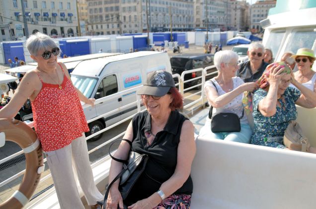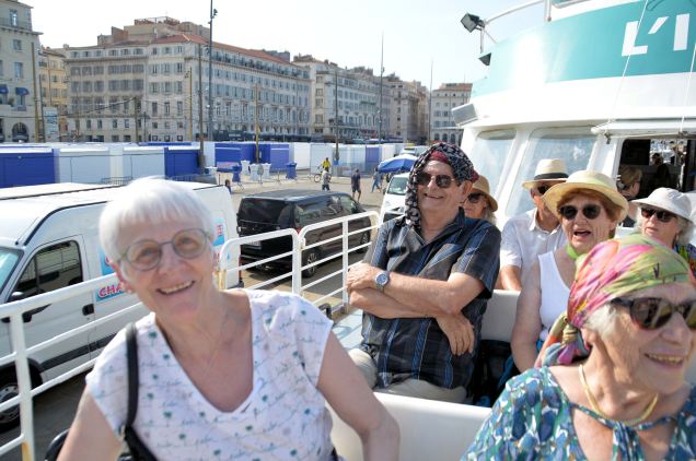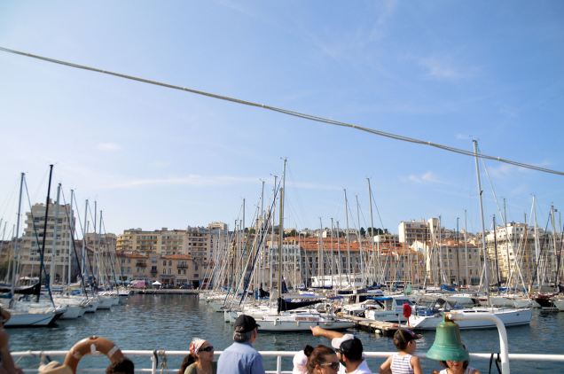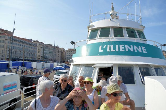 La deuxième journée débute par la corvée des valises, que nous devons déposer dans le car avant de rejoindre le Vieux Port, pour embarquer à bord de l’Ilienne, le plus gros navire de la compagnie Croisières Marseille Calanques.