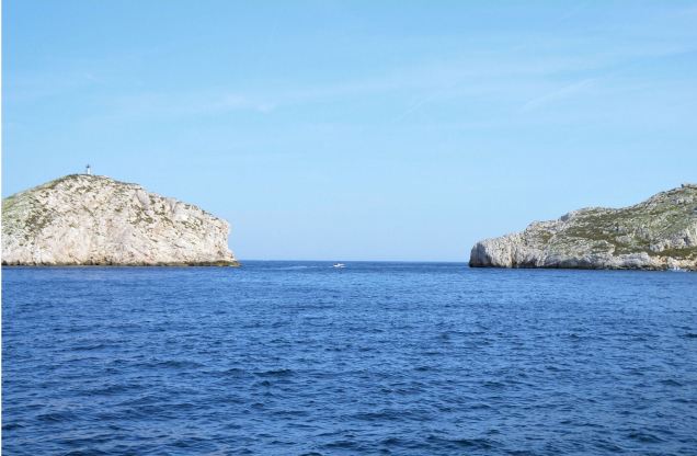 Après avoir navigué le long de la côte jusqu’aux quartiers sud de Marseille, à quelques encâblures, nous pouvons apercevoir le Cap Croisette, qui se trouve à la porte d’entrée du Parc national des Calanques et sur la droite, l’archipel de Riou se profile au large du massif de Marseilleveyre. Il se compose de plusieurs îles, dont la plus grande porte son nom, mais également de quelques îlots et rochers, notamment l’île Maïre ancrée en face du Cap Croisette. Elle n’est d’ailleurs séparée des côtes marseillaises que par un étroit passage de seulement soixante-dix à quatre-vingts mètres. La beauté et la richesse des fonds marins de ce site en font un milieu privilégié pour les plongeurs.