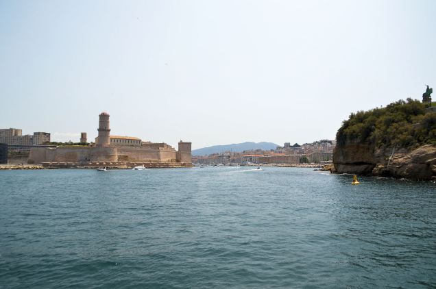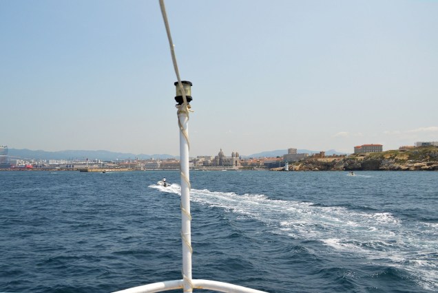 A peine avons nous franchi le chenal du Vieux Port, qu’apparaît déjà sur notre droite, l’archipel du Frioul constitué de quatre îles, dont le château d’If, une forteresse rendu célèbre par le roman d’Alexandre Dumas, d’où subsiste encore diverses traces de l’ancienne activité militaire. Le temps est clair, dégagé, avec une légère brise formant de petites vagues …
