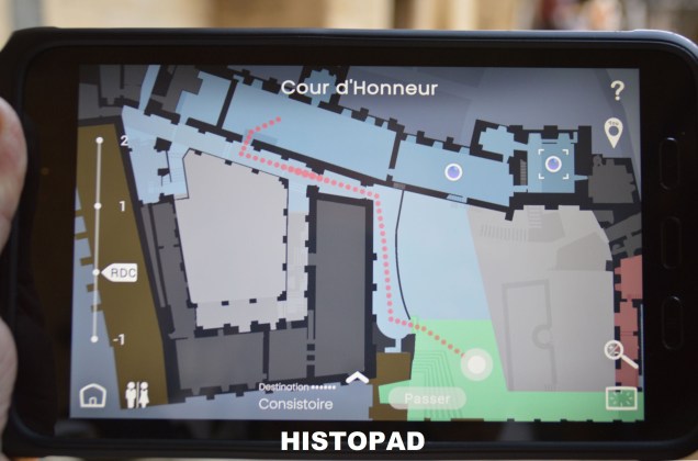 Dotés d’un histopad (tablette numérique), qui permet de revivre les fastes de la cour pontificale au XIVème siècle, en immersion virtuelle, nous avons ainsi pu visualiser à l’aide de la tablette, une grande partie des 9 salles du Palais des papes, telles qu’elles pouvaient être au XIVème siècle.
