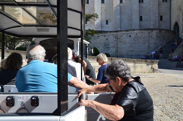 Après le déjeuner libre, tous les participants avaient rendez-vous sur la place du Palais des Papes pour embarquer à bord du petit train touristique.