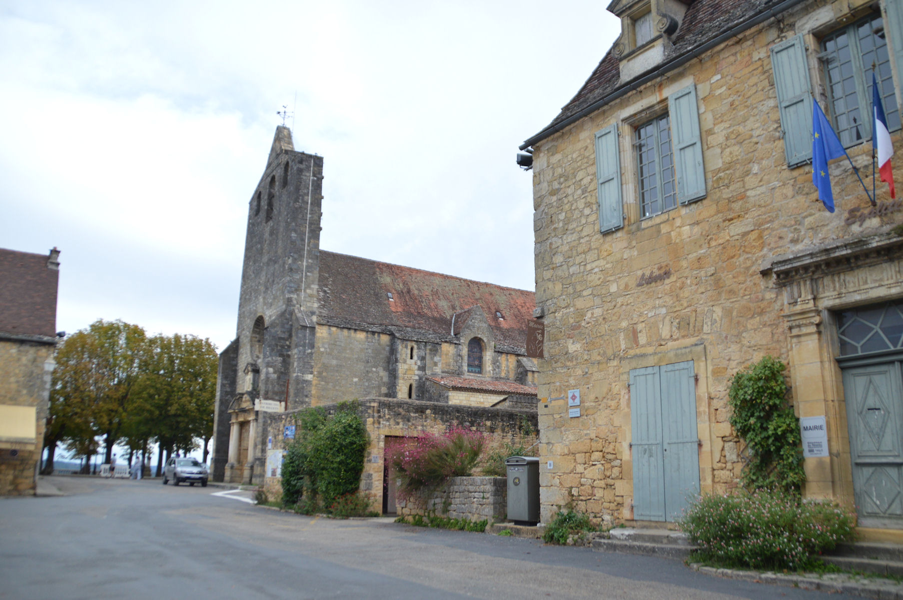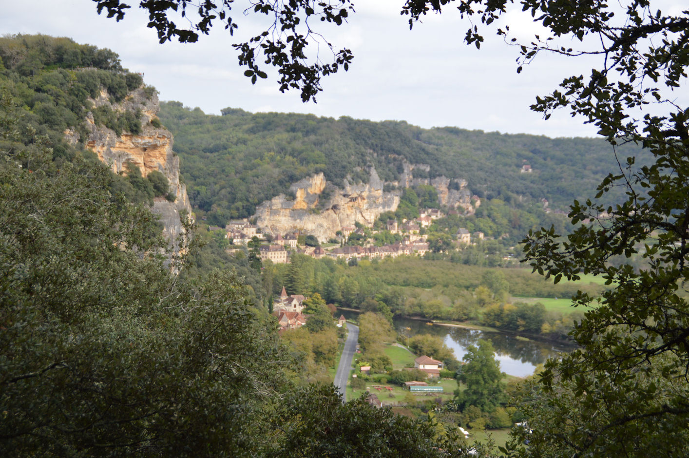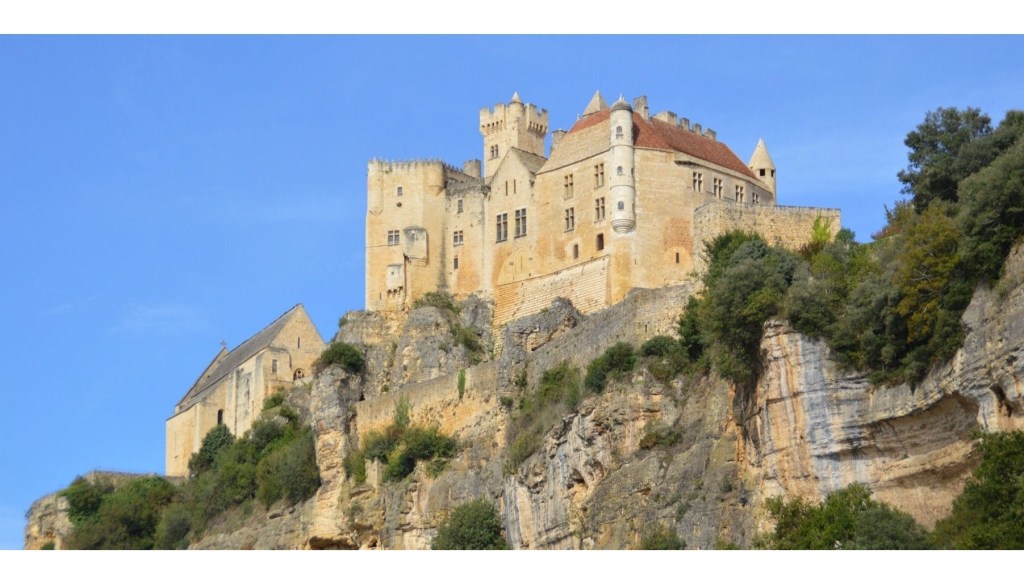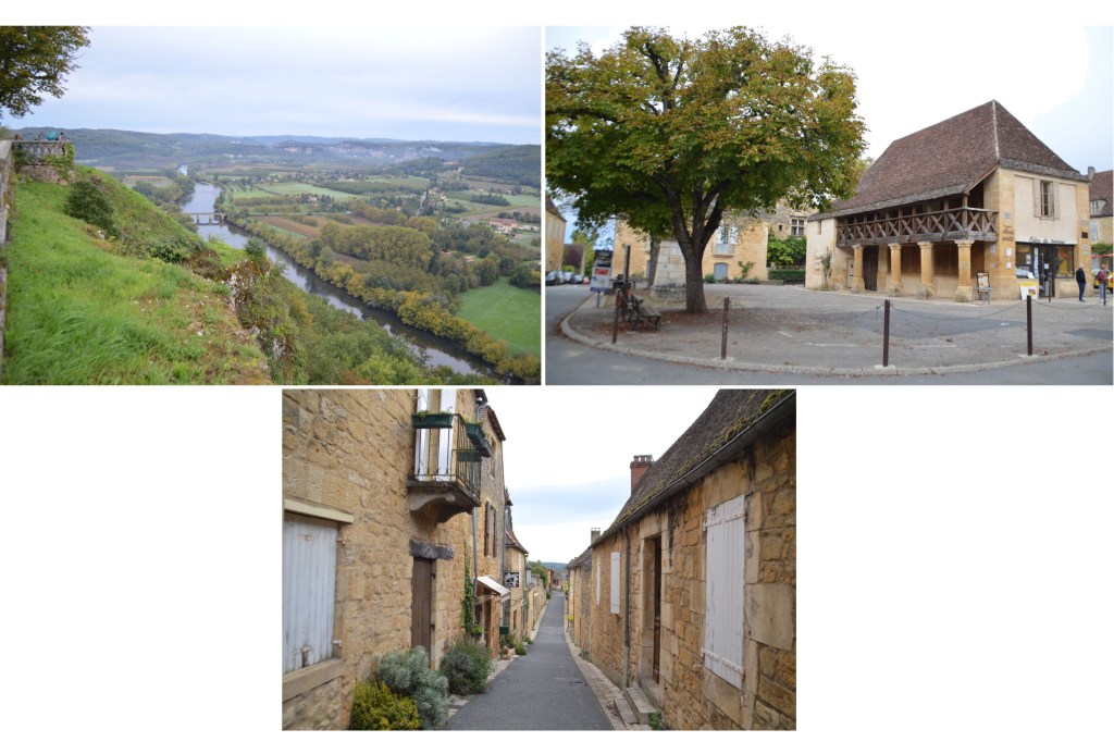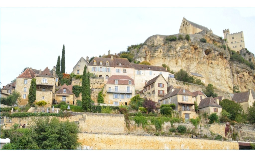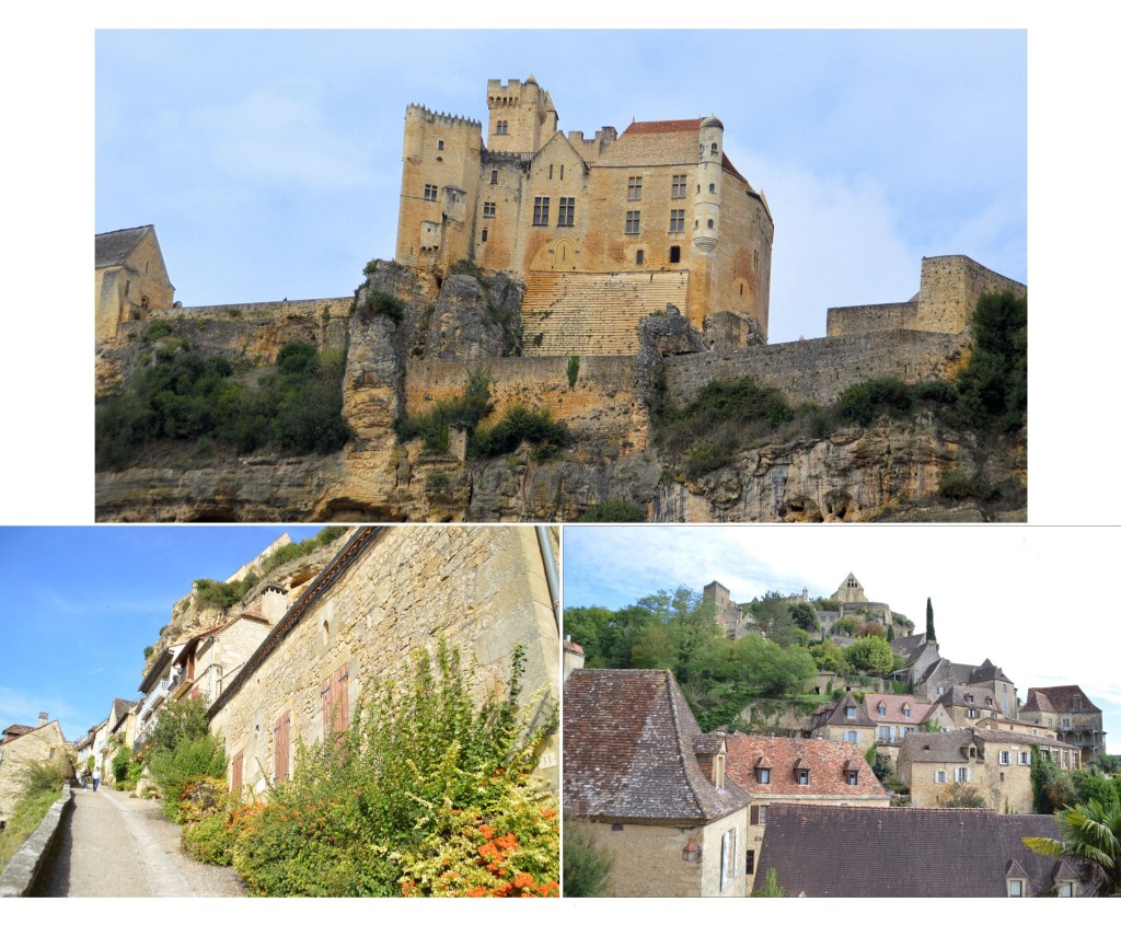 *Quant au village, également du 12ème siècle, il est sculpté dans la falaise, avec ses ruelles pavées qui s’enchevêtrent entre les maisons en pierres calcaires, coiffées de toits de lauzes, qui s’étagent en terrasses jusqu’à la Dordogne, ainsi que l’énorme pigeonnier-falaise, une habitation semi-troglodyte construite au-dessus des remparts.