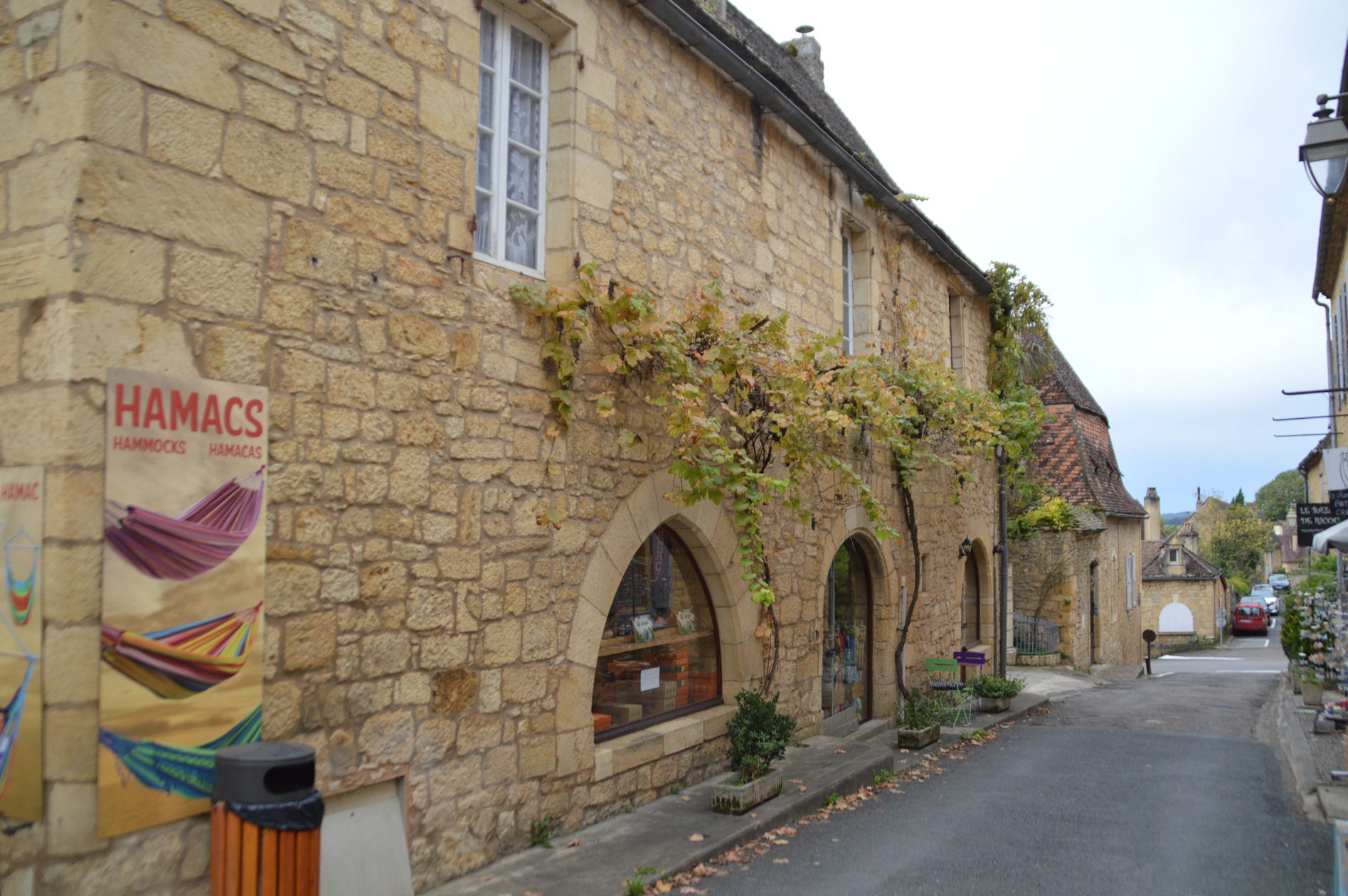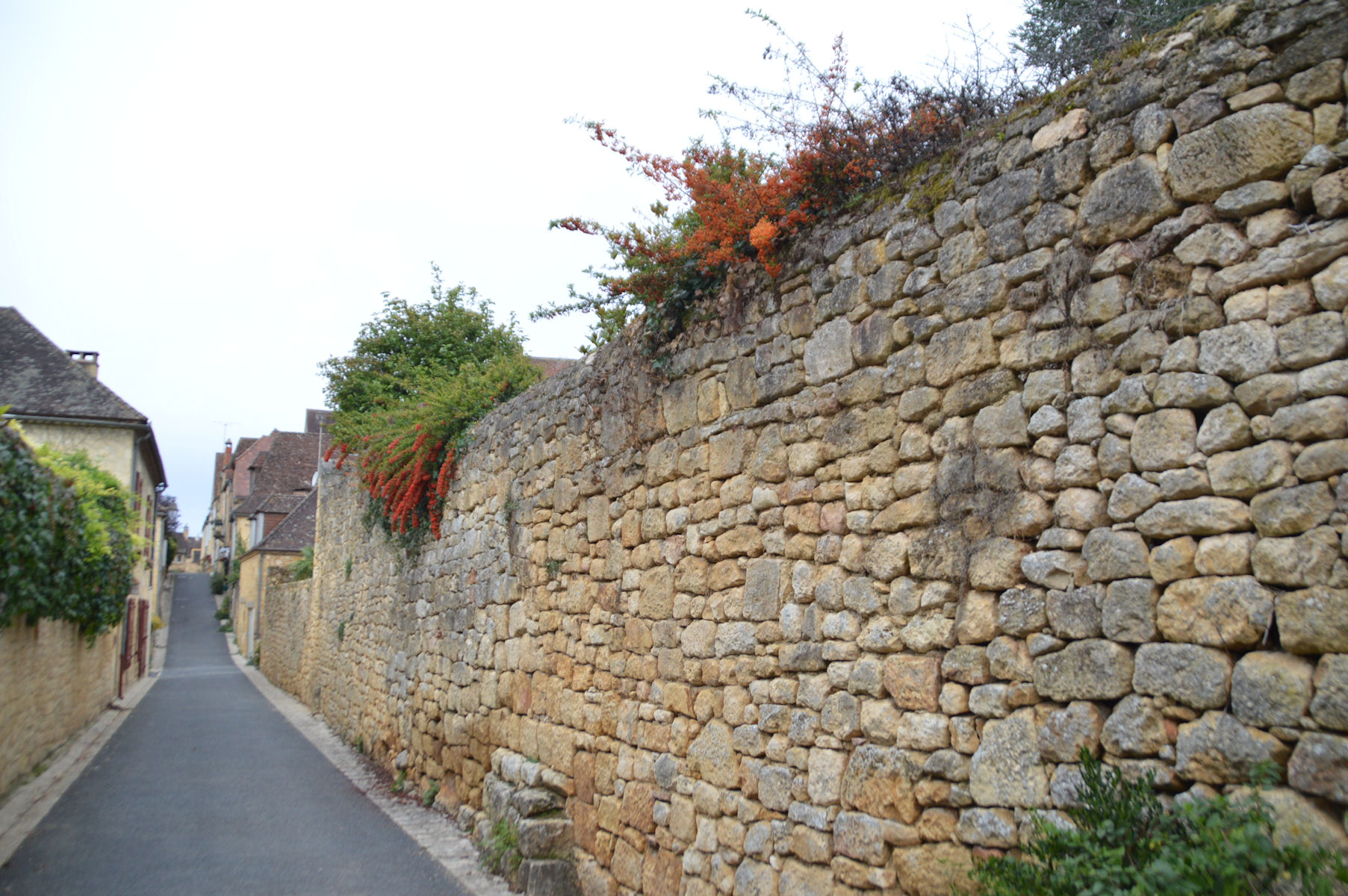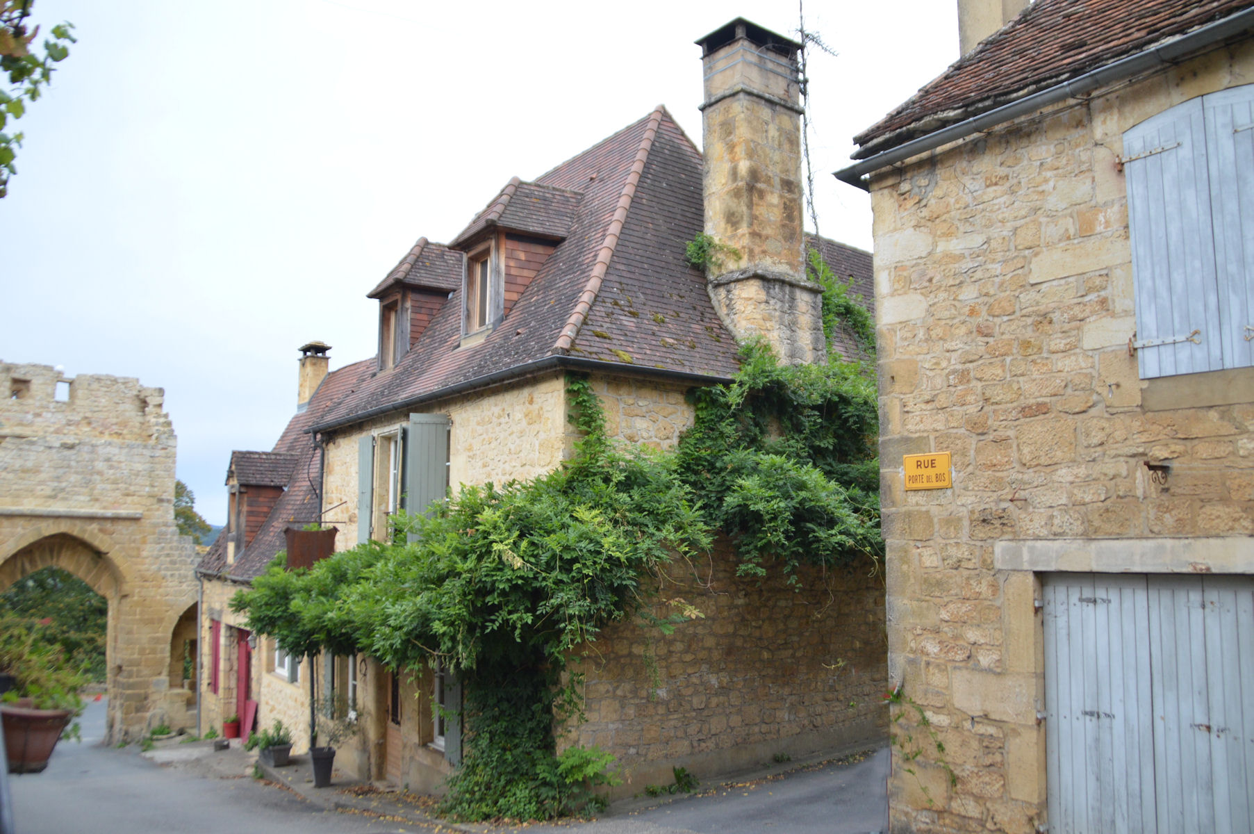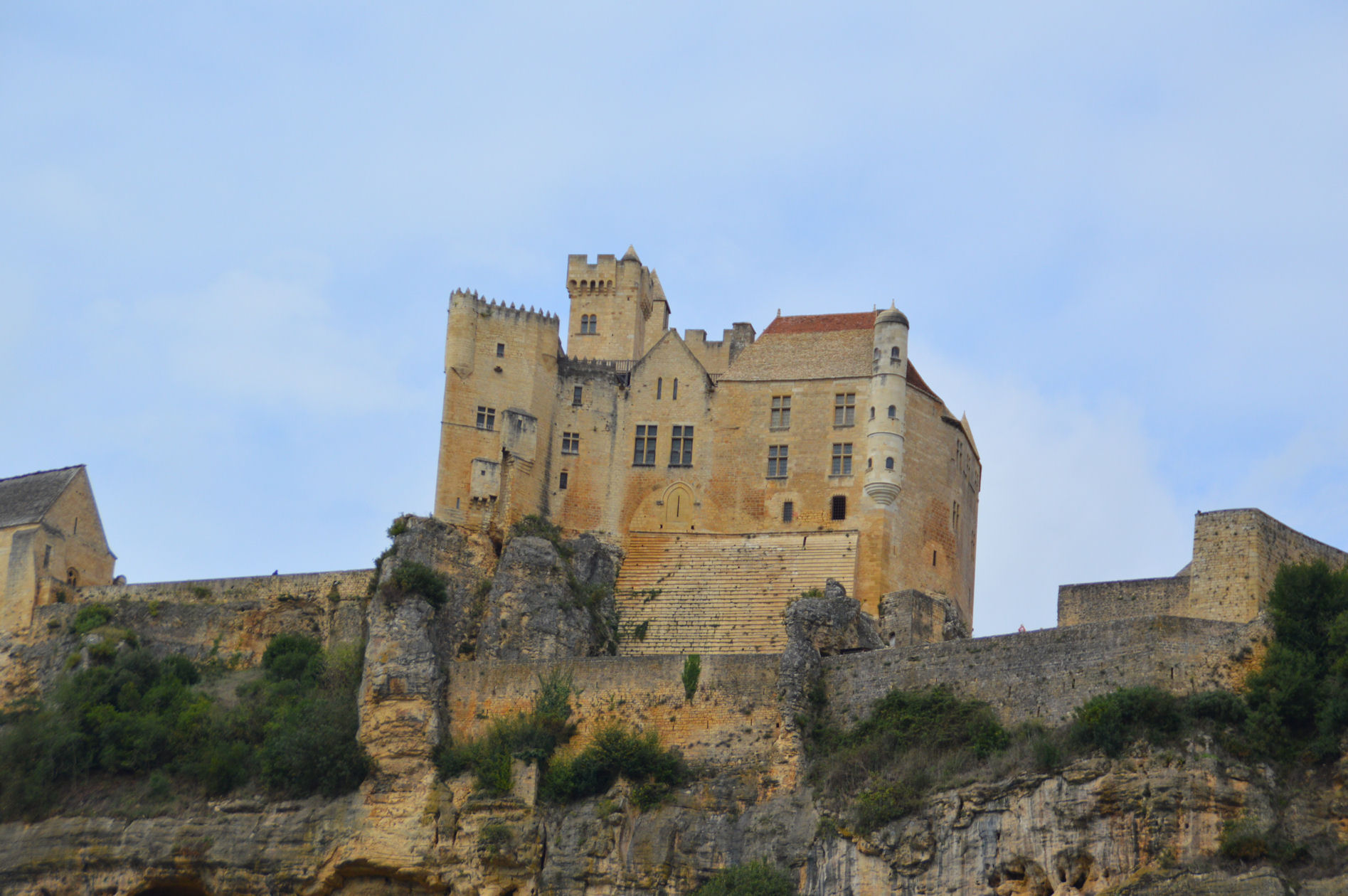*Quant au village, également du 12ème siècle, il est sculpté dans la falaise, avec ses ruelles pavées qui s’enchevêtrent entre les maisons en pierres calcaires, coiffées de toits de lauzes, qui s’étagent en terrasses jusqu’à la Dordogne, ainsi que l’énorme pigeonnier-falaise, une habitation semi-troglodyte construite au-dessus des remparts.