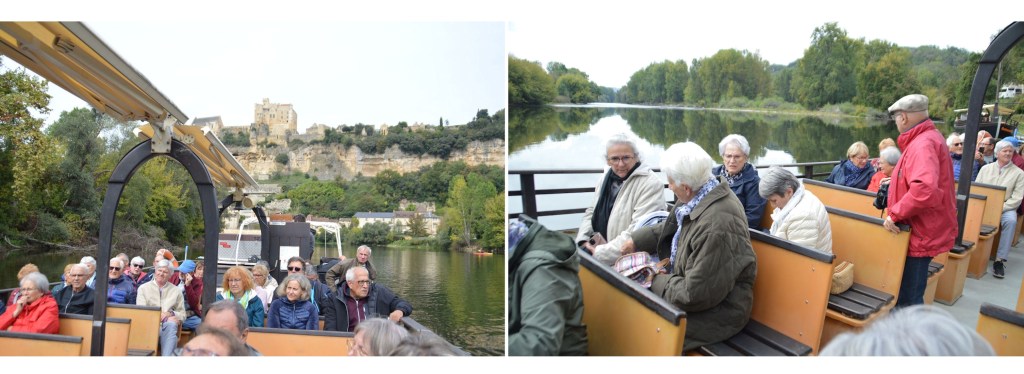Mais pour l’heure, à bord de notre gabarre au nom évocateur d’un personnage de légende Coulobre, cette mini-croisière fluviale se révèle être un véritable moment de détente. Nous pouvons à nouveau contempler le magnifique panorama du château de Beynac, perché au sommet d’un éperon rocheux et le village médiéval agrippé au pied de la falaise. Dans le même temps, les commentaires de notre guide ajoutent une dimension culturelle à ce décor de rêve, en nous dévoilant son histoire fascinante.*