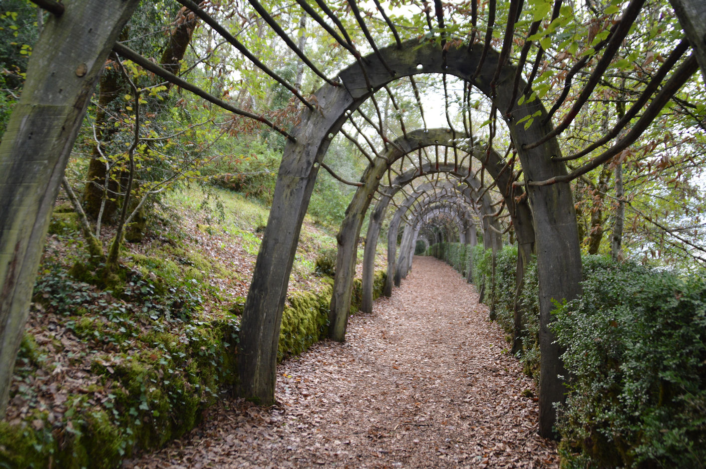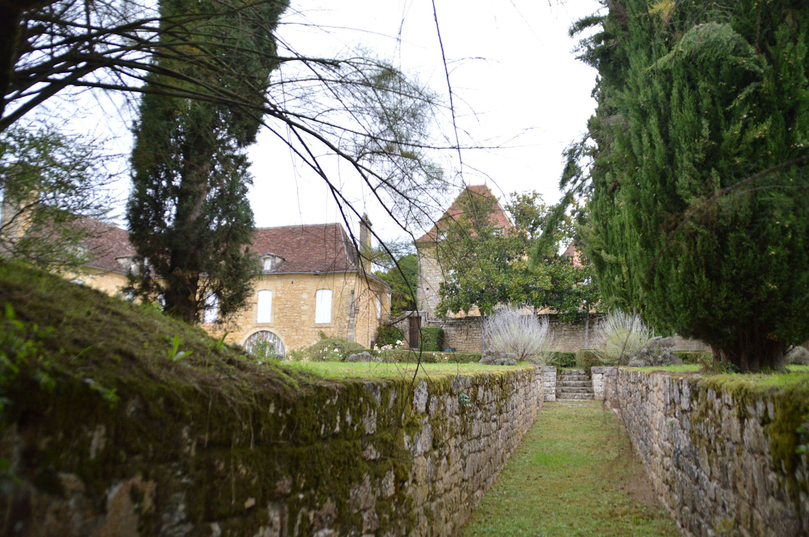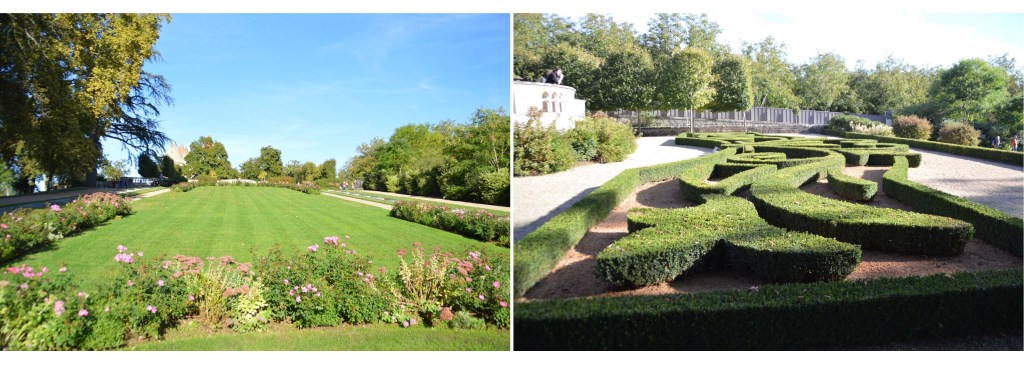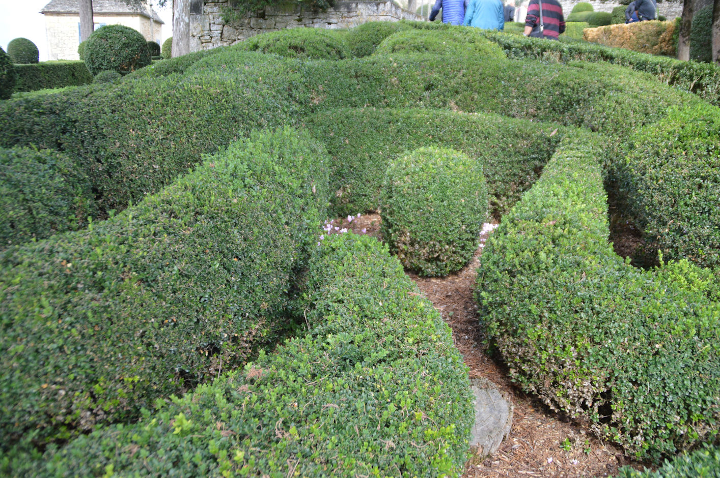 Nichés sur un promontoire, ces jardins à la française disposent d’une vue imprenable sur la vallée de la Dordogne et d’un peu plus de six kilomètres de promenades ombragées, bordées de 150 000 buis centenaires taillés à la main, agrémentés de belvédères, rocailles et parcours d’eau… Les jardins ont été réhabilité en 1996, une restauration qui s’est attachée à la préservation des lieux, afin de redonner au parc son caractère d’antan, principalement l’allée serpentine de santolines et de romarins, ainsi que dans l’esprit des rocailles du 19ème siècle.