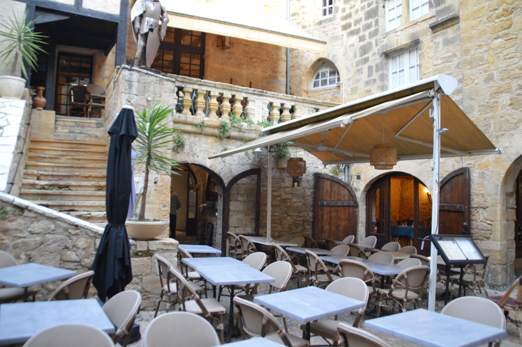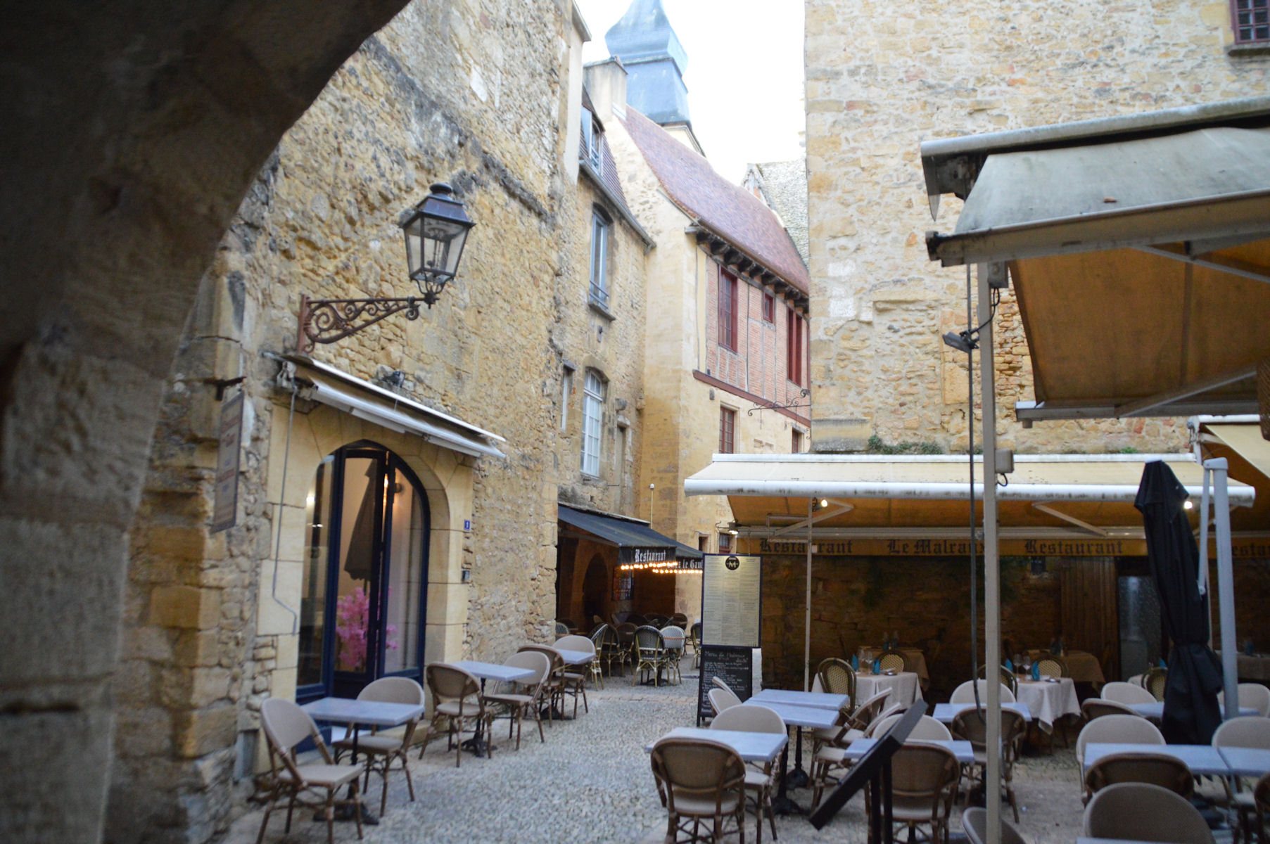 On tombe immédiatement sous le charme de cette cité médiévale. Les hautes maisons fleuries, les petites ruelles, la pierre omniprésente forment un décor historique de qualité. Après cette immersion au cœur du patrimoine historique et gastronomique de Sarlat, nous avons rendez-vous à l’Hostellerie Maleville à Beynac.