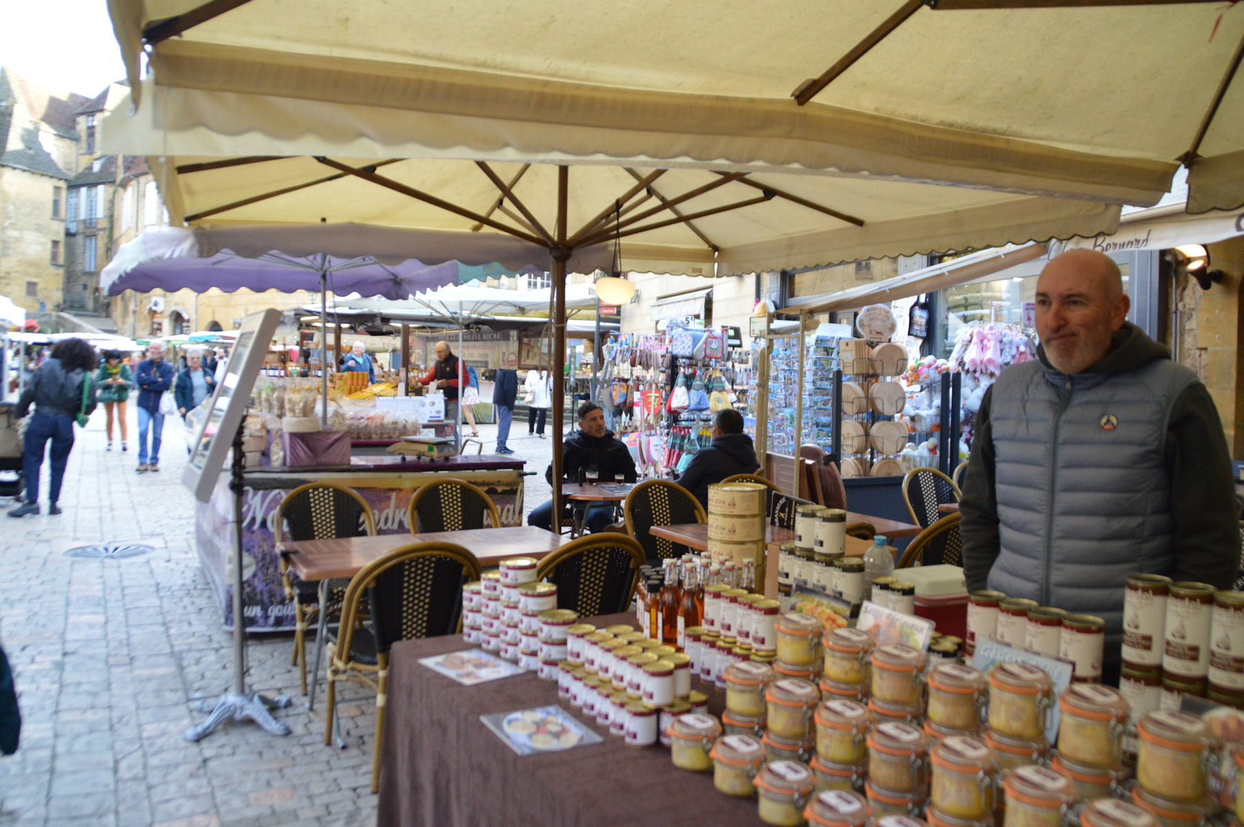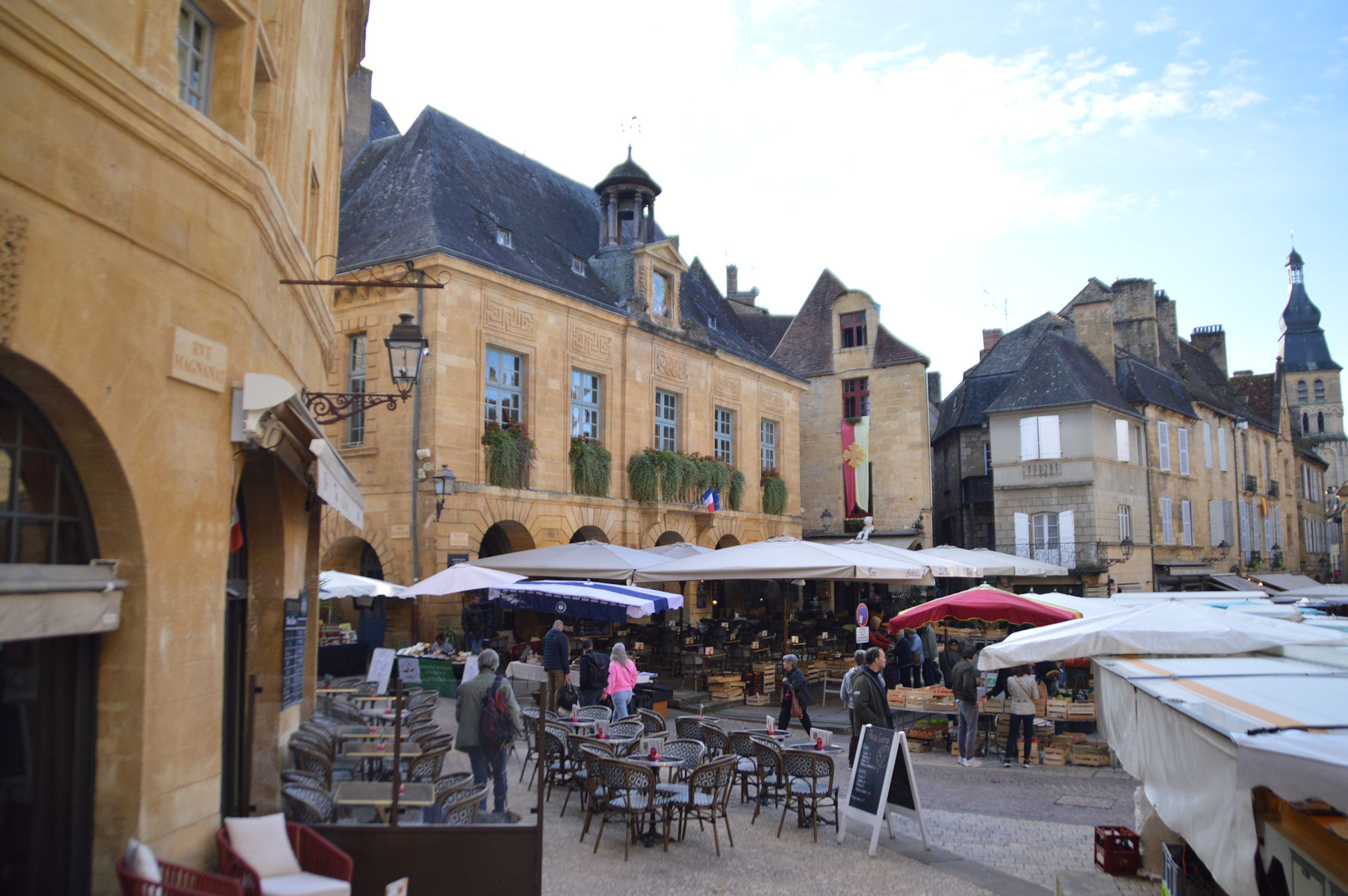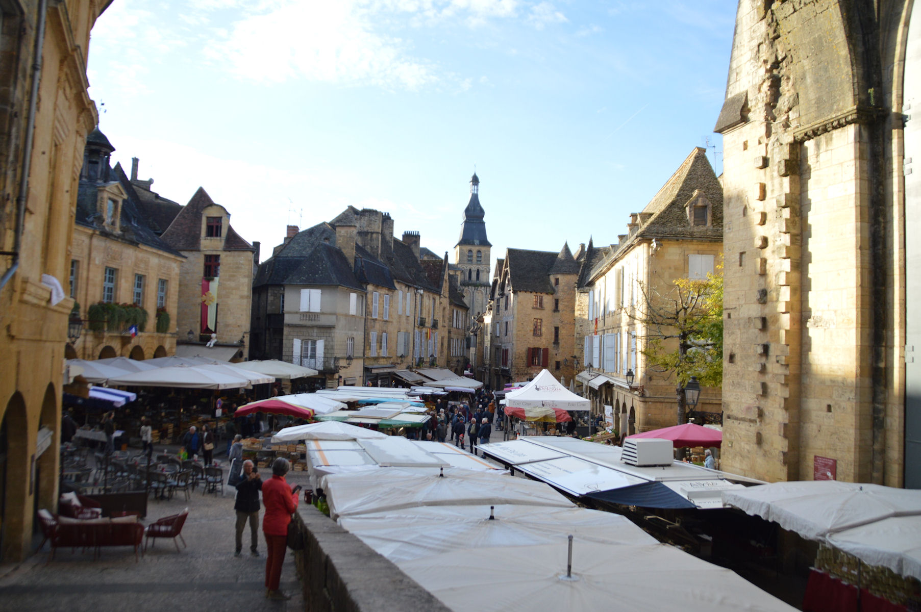 Tous les participants partent à la découverte de la cité médiévale de Sarlat, qui vit depuis le Moyen-âge au rythme de ses marchés. Ils s’étendent de l’avenue Gambetta à la rue de la République en passant par les rues piétonnes du secteur sauvegardé. Des centaines de producteurs proposent leurs produits d’exception, des noix, de la truffe, du foie gras, du miel, des savons artisanaux, de la charcuterie, des sucreries, des vêtements, ou encore du vin ainsi que des fraises et des châtaignes du Périgord. Moins typiques, certains d’entre-eux n’ont sans doute pas d’appellation Périgord Noir !